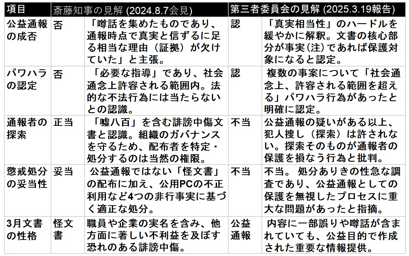 斎藤知事は2024年3月の対応は適法、適切であったとして、第三者委員会の見解を受け入れていません。