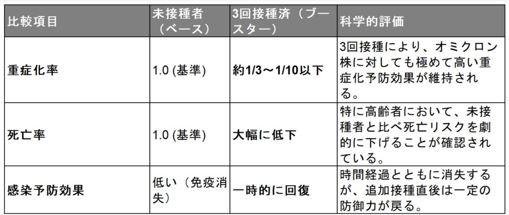 新型コロナワクチンの効果については、流行したウイルスの変異(デルタ株からオミクロン株へ)や、日本の感染症法上の位置づけの変化(2類相当から5類へ)によって、その科学的評価の側面が大きく異なります。