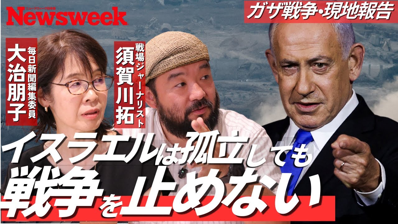 この動画は、ニューズウィーク日本版編集長の長岡義博氏が、元JNN中東局長で戦場取材をされている須賀川拓氏と、元毎日新聞エルサレム支局長の大治朋子氏を招き、「終わりが見えないガザ戦争の出口」について議論したものです。
